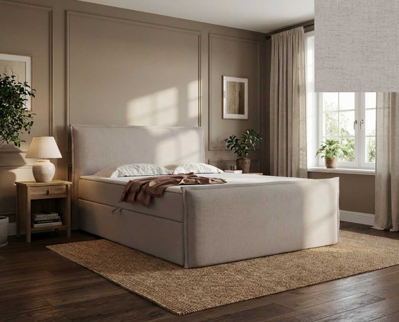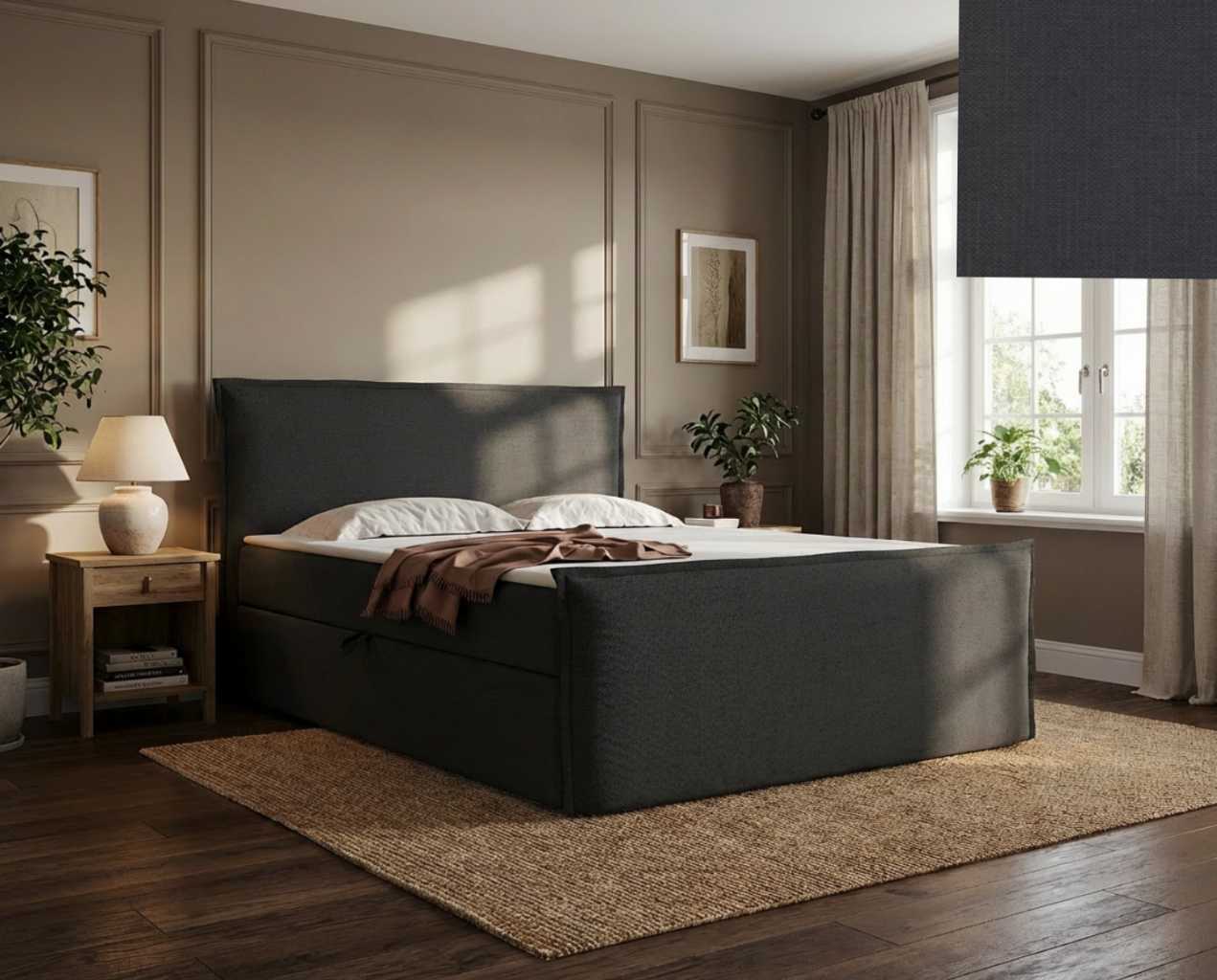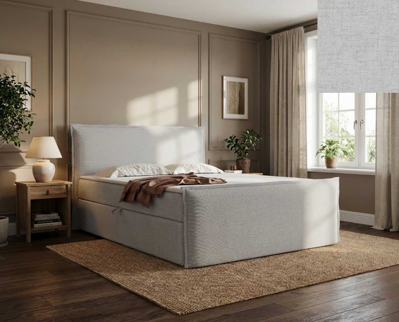 ANZI Dieses einzigartige Kontinentalbett mit seinem auffälligen, hohen Kopfteil verbindet modernes Design mit zeitloser Eleganz. Dank seiner universellen Form passt es perfekt in jedes Interieur – von industriellen Lofts über klassische Einrichtungen bis hin zum Glamour-Stil.