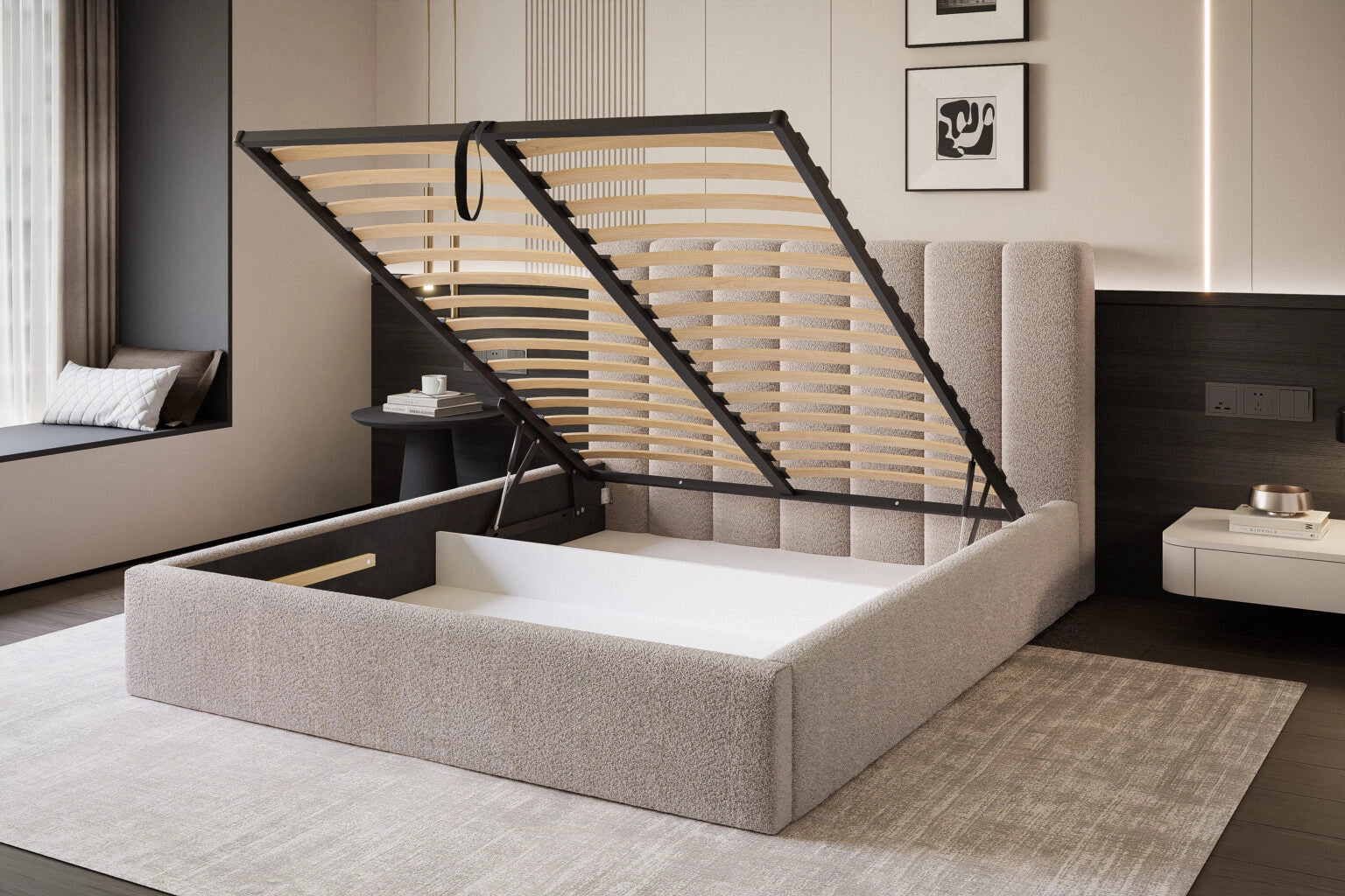 geräumigen Bettkasten, der sich unter der gesamten Liegefläche befindet. Hier können Sie