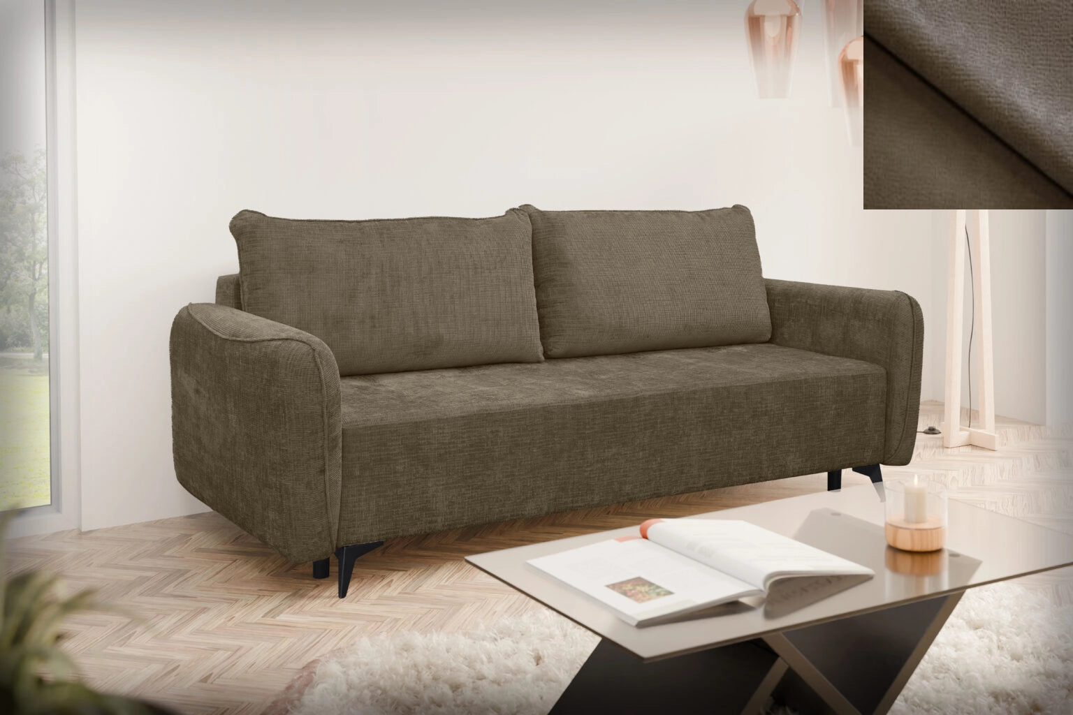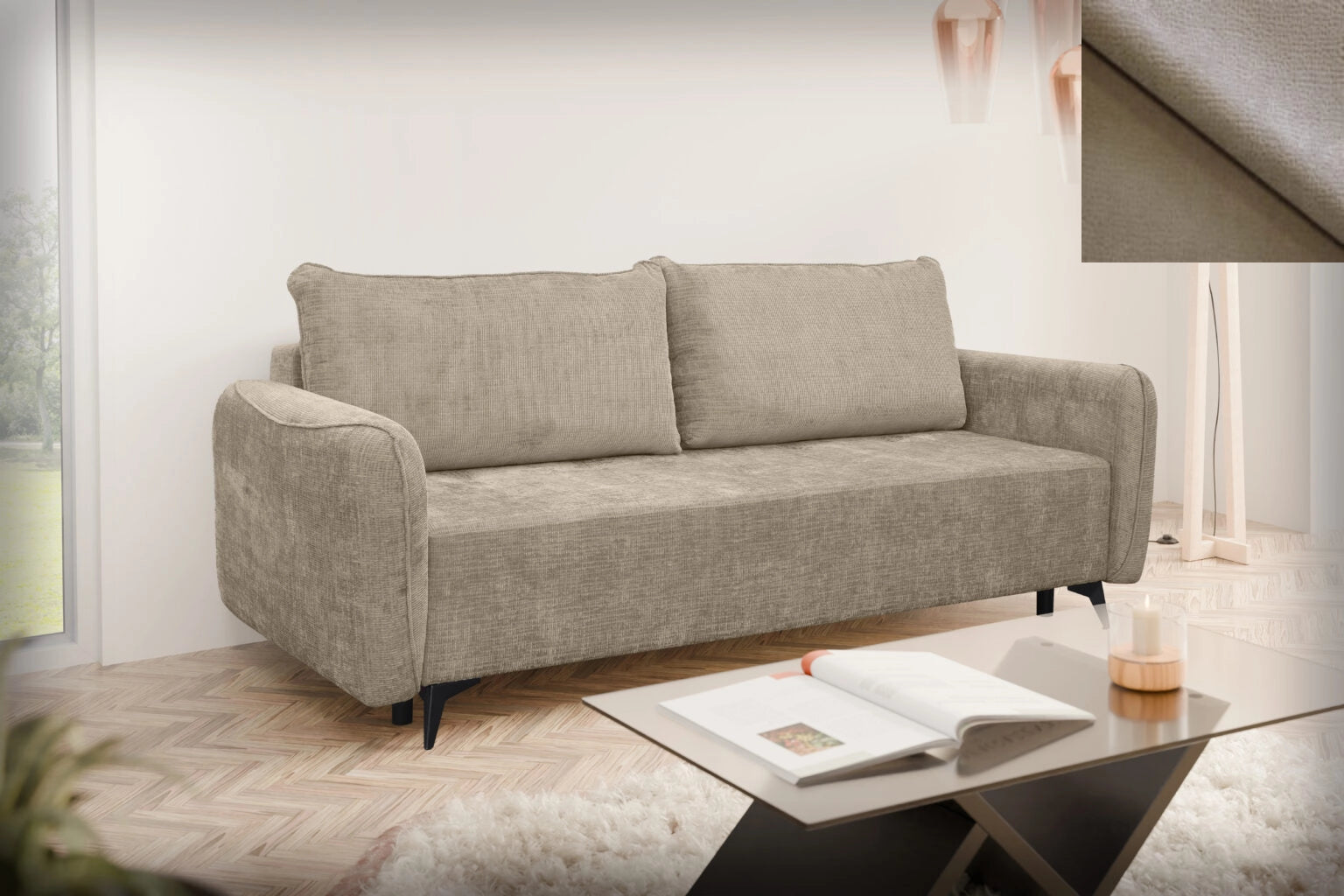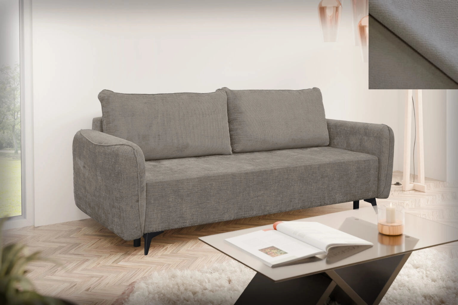 Loki wurde mit Blick auf Vielseitigkeit entworfen. Ihre klare Form, ihr schlichtes Design und die Liebe zum Detail sorgen dafür, dass sie sich perfekt in verschiedene Einrichtungsstile einfügt – ob modern, skandinavisch, klassisch oder industriell. Es ist ein Sofa, das keinen Stil vorschreibt, sondern ihn perfekt ergänzt. Trotz ihres dezenten Aussehens bietet die Couch Loki einen voll funktionsfähigen Schlafplatz. Dank ihres einfach zu bedienenden Mechanismus verwandelt sie sich in wenigen Augenblicken in ein bequemes Bett für zwei Personen – die ideale Lösung für unerwartete Gäste oder kleinere Wohnungen. Sie verbindet elegantes Aussehen mit praktischer Anwendbarkeit.