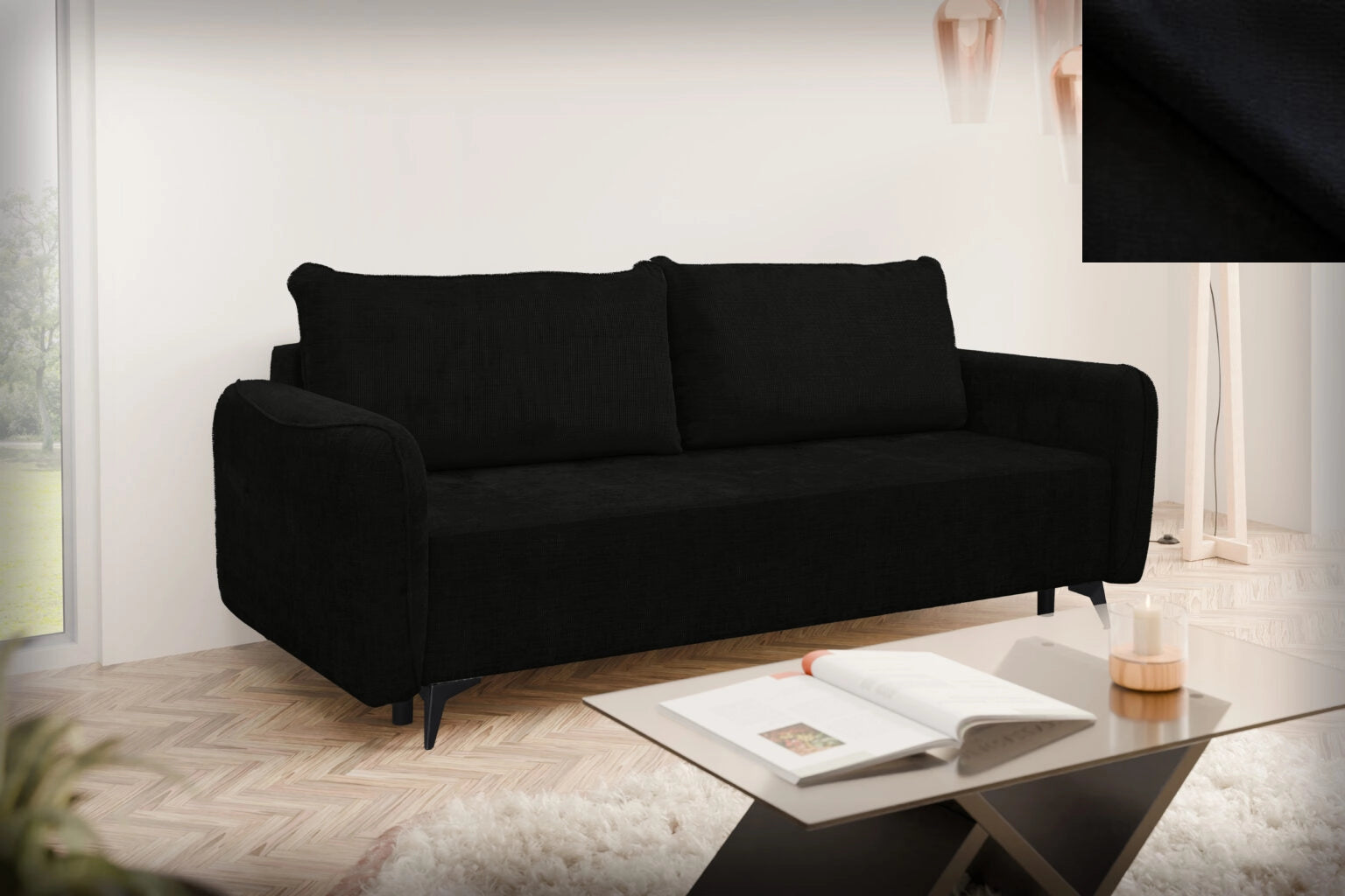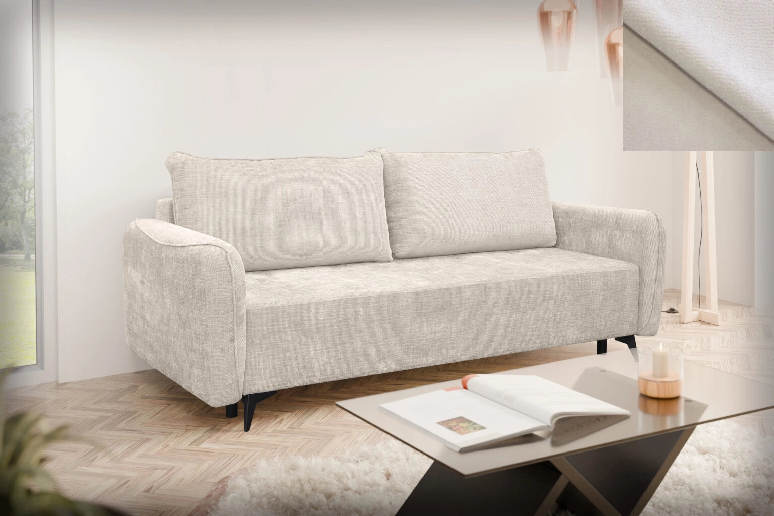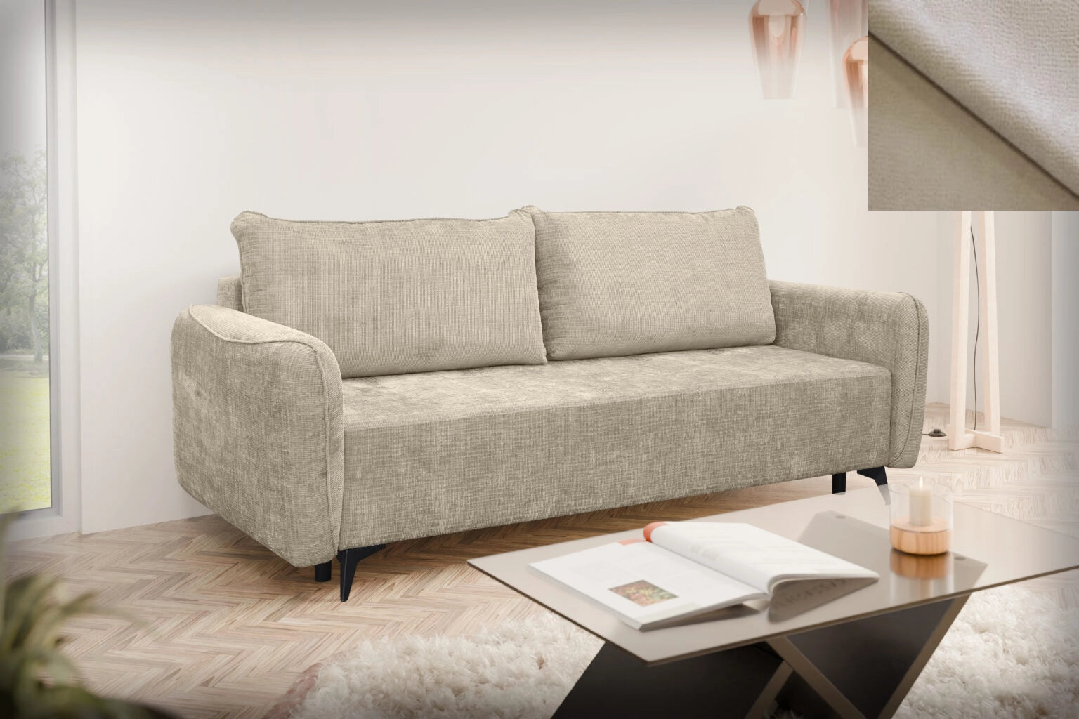 Loki wurde mit Blick auf Vielseitigkeit entworfen. Ihre klare Form, ihr schlichtes Design und die Liebe zum Detail sorgen dafür, dass sie sich perfekt in verschiedene Einrichtungsstile einfügt – ob modern, skandinavisch, klassisch oder industriell. Es ist ein Sofa, das keinen Stil vorschreibt, sondern ihn perfekt ergänzt. Trotz ihres dezenten Aussehens bietet die Couch Loki einen voll funktionsfähigen Schlafplatz. Dank ihres einfach zu bedienenden Mechanismus verwandelt sie sich in wenigen Augenblicken in ein bequemes Bett für zwei Personen – die ideale Lösung für unerwartete Gäste oder kleinere Wohnungen. Sie verbindet elegantes Aussehen mit praktischer Anwendbarkeit.