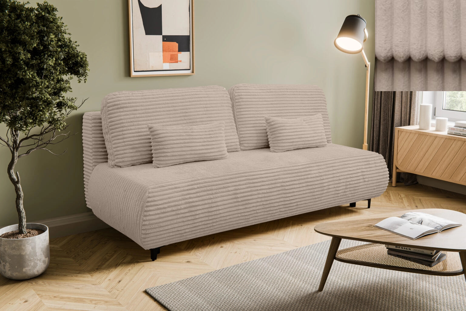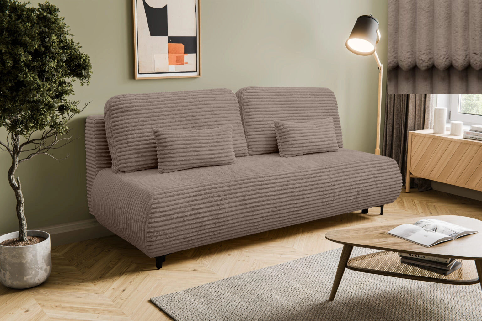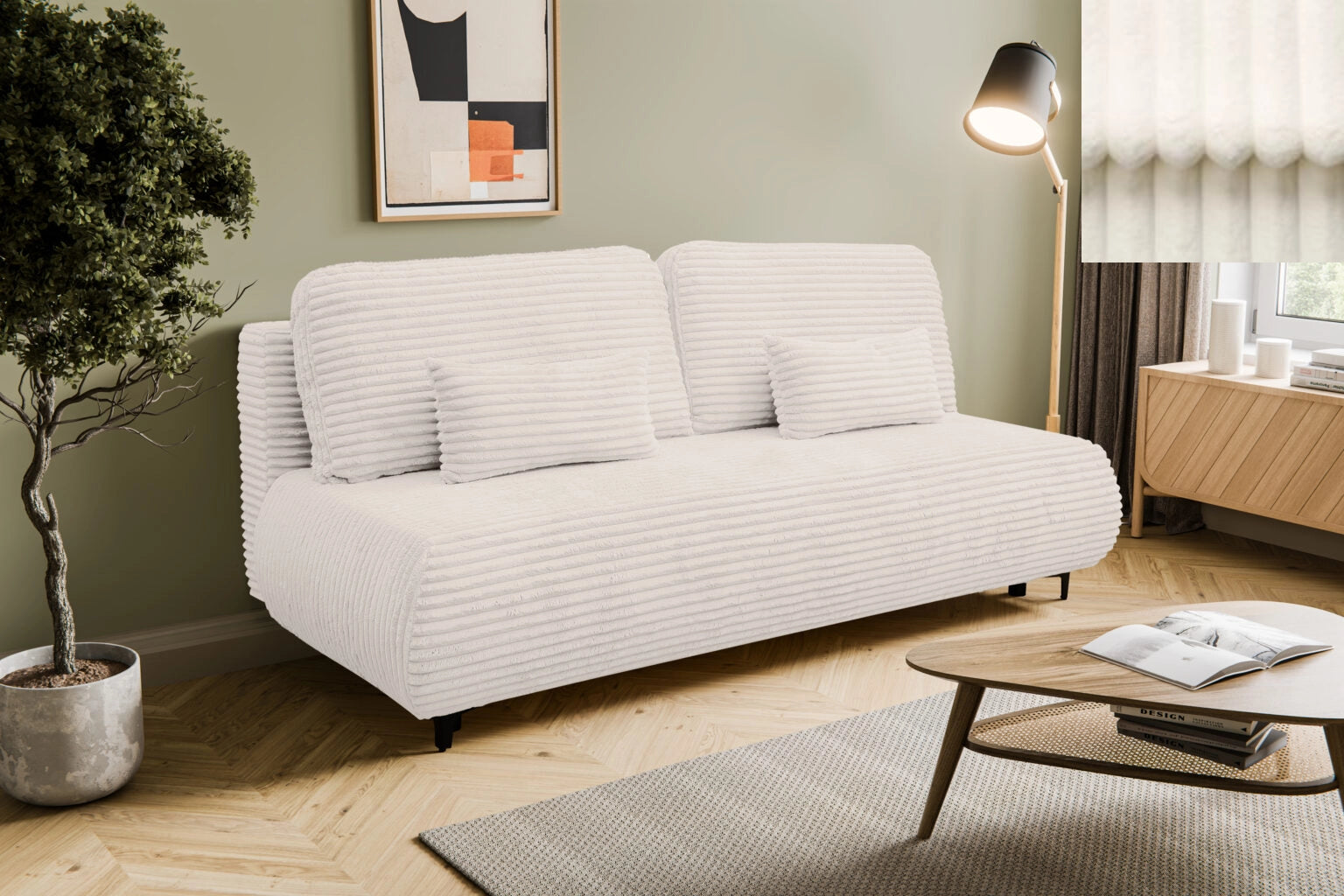 Das Sofa Chia – klein, leicht, bequem. Ideal für jedes Interieur ist dieses moderne, kompakte Sofa mit Schlaffunktion, das für diejenigen entwickelt wurde, die Komfort und Ästhetik auch in kleineren Räumen schätzen.