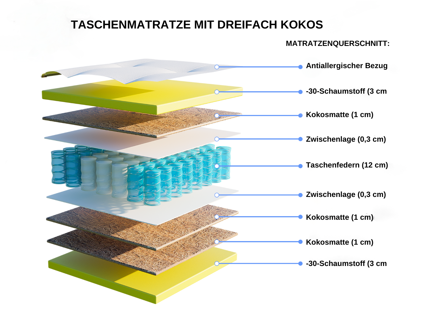 IKARIA - TASCHENMATRATZE MIT DREIFACH-KOKOSFASER