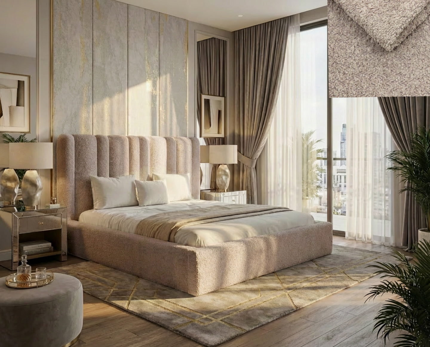 Melfi besticht durch sein einzigartiges Kopfteil mit dezenten Wölbungen, die ihm einen modernen und zugleich gemütlichen Charakter verleihen. Dank der stilvollen Nähte und der makellosen Verarbeitung erfüllt das Kopfteil nicht nur eine praktische, sondern auch eine dekorative Rolle und verleiht dem Schlafzimmer einen Hauch von Klasse und Eleganz.