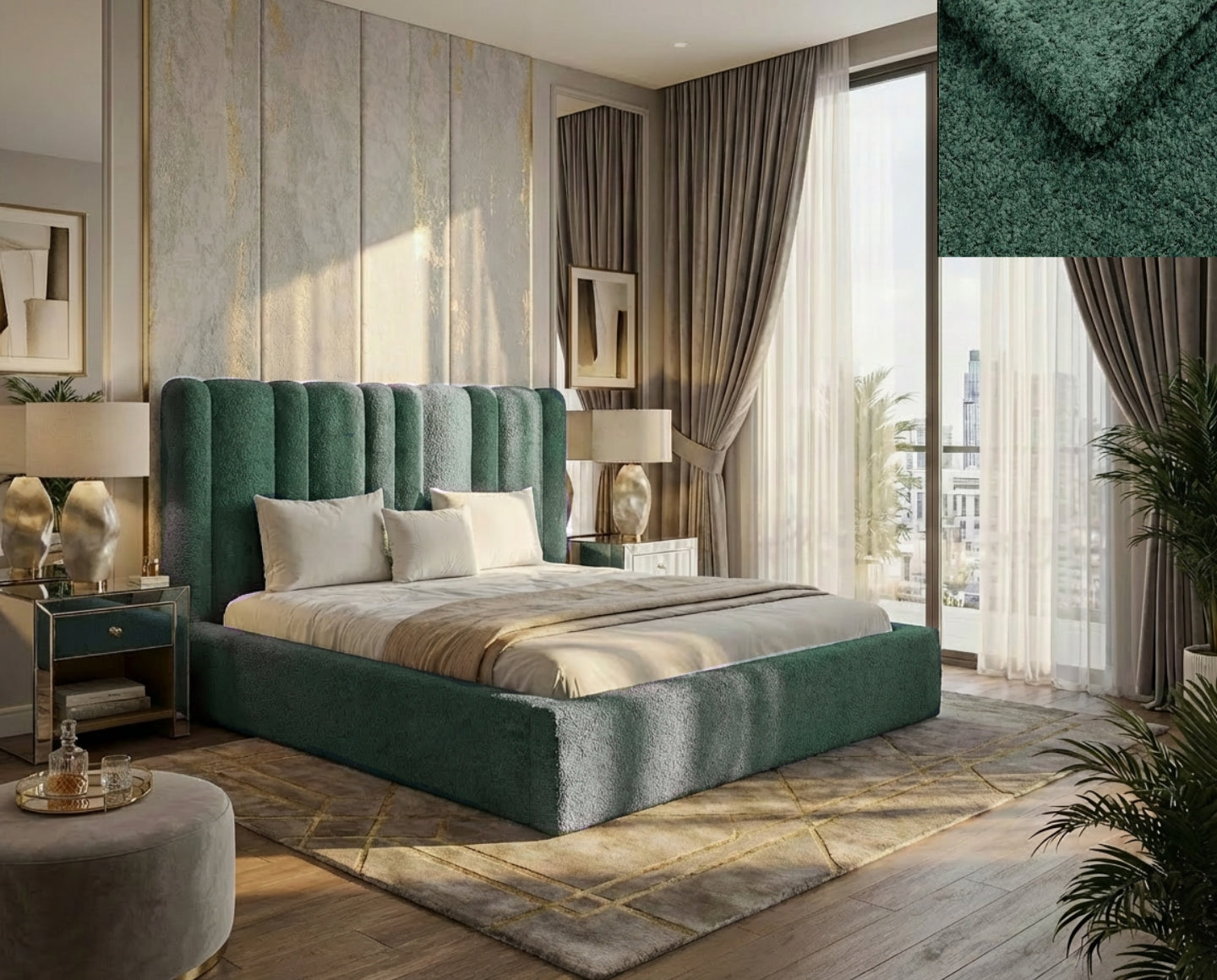 Das Polsterbett Melfi – moderne Eleganz in Ihrem Schlafzimmer mit einem ausgefallenen Kopfteil. Die sichtbaren Wölbungen verleihen dem Kopfteil Eleganz und Tiefe. Die perfekte Wahl für ein Schlafzimmer mit Charakter. Bequem, solide und schön.