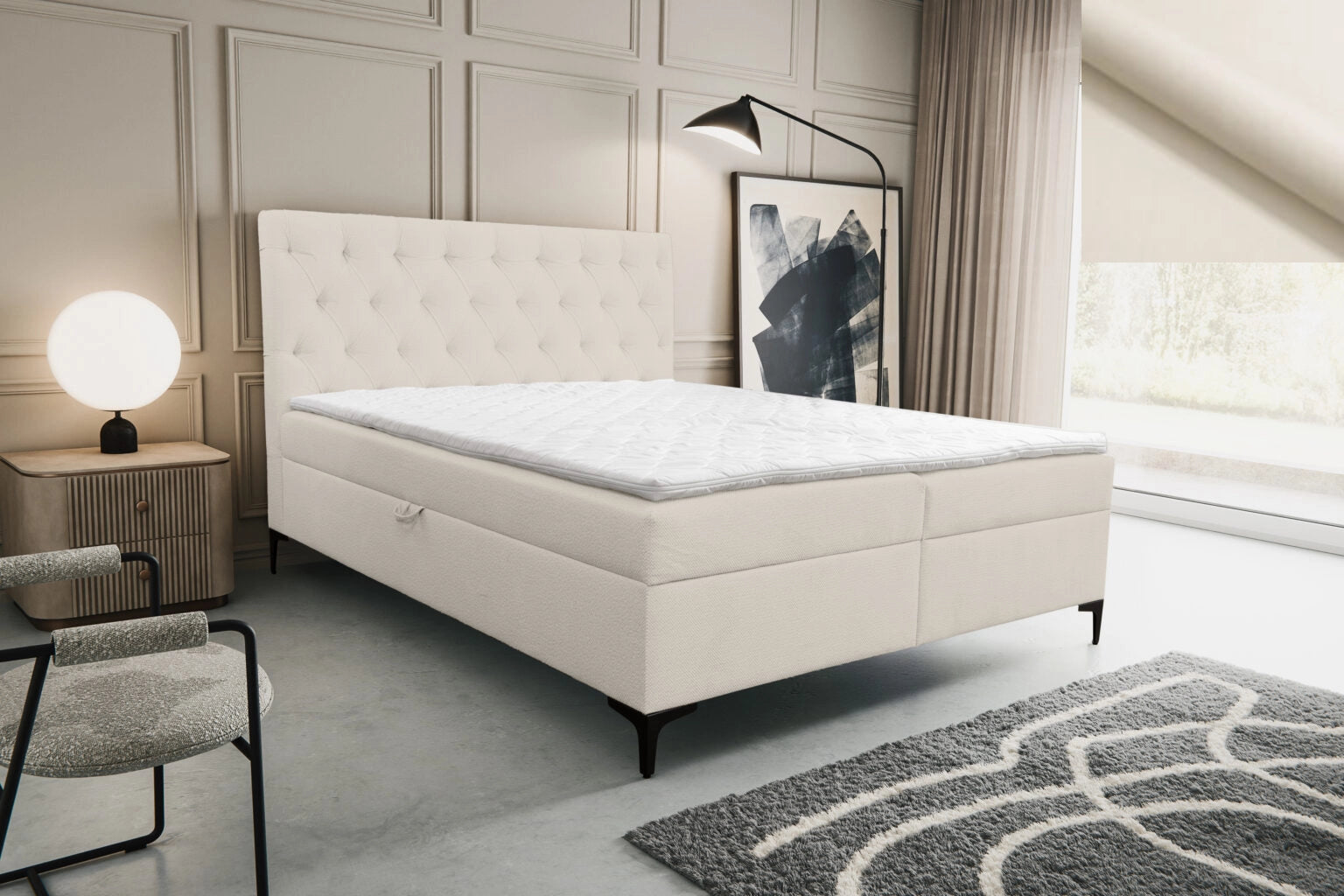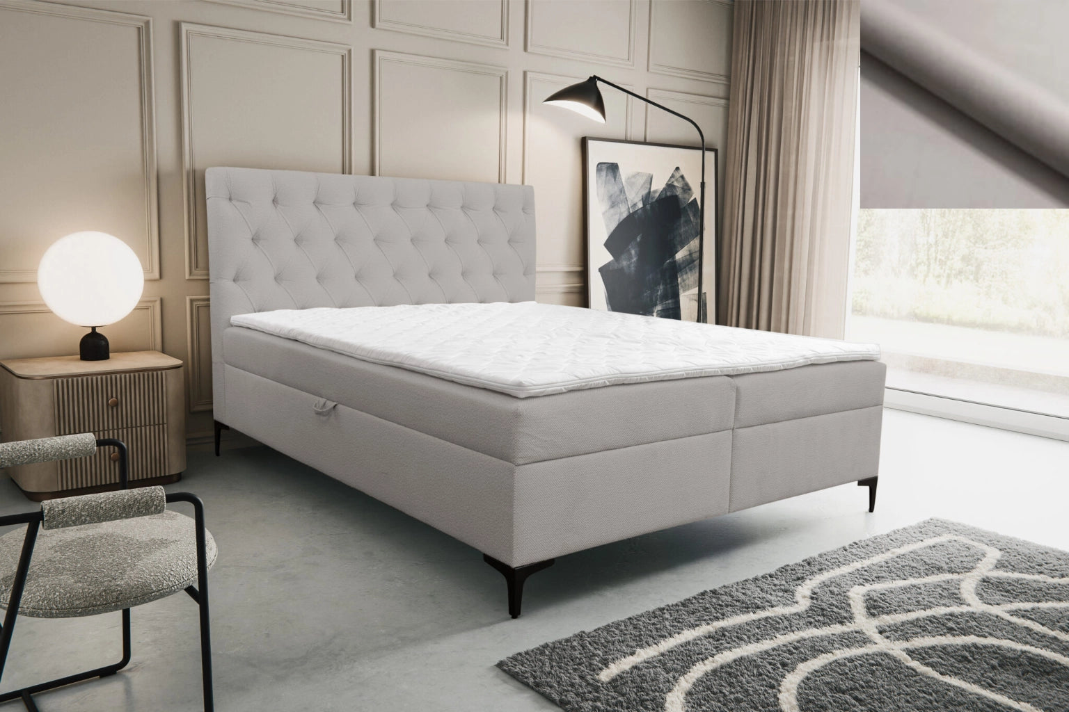 Montella ist die ideale Wahl für Liebhaber des Glamour-Stils, die ihrem Schlafzimmer einen Hauch von Luxus und Eleganz verleihen möchten. Sein wunderschönes Kopfteil, verziert mit subtilen Details, bildet den Mittelpunkt des gesamten Interieurs und verleiht dem Raum einen einzigartigen Charakter. Es ist ein Möbelstück, das nicht nur für einen komfortablen Schlaf sorgt, sondern auch eine echte Zierde für das Schlafzimmer ist.
