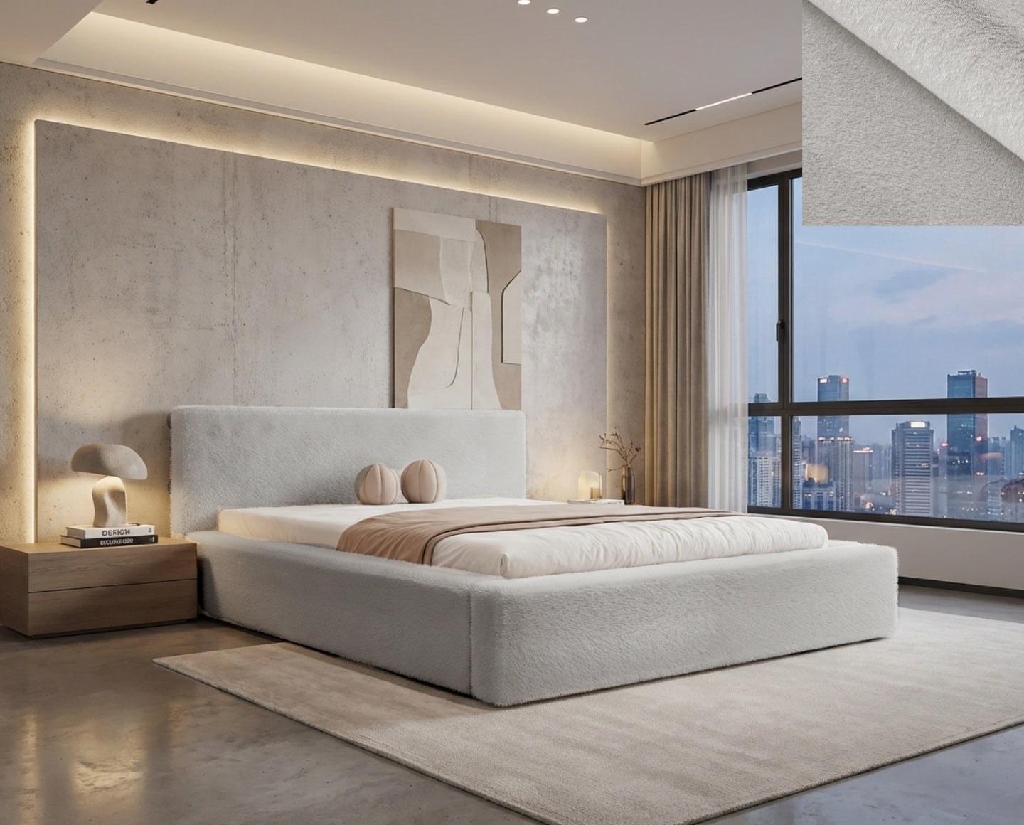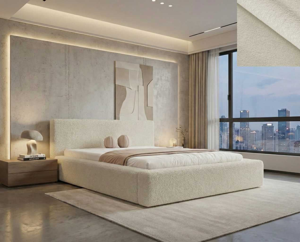 Das mit einem zarten und angenehm anzufassenden Stoff bezogene Bett Parma verleiht dem Raum elegante Schlichtheit und subtilen Charme. Es ist ein Möbelstück, das sowohl zu klassischen als auch zu modernen Räumen passt.