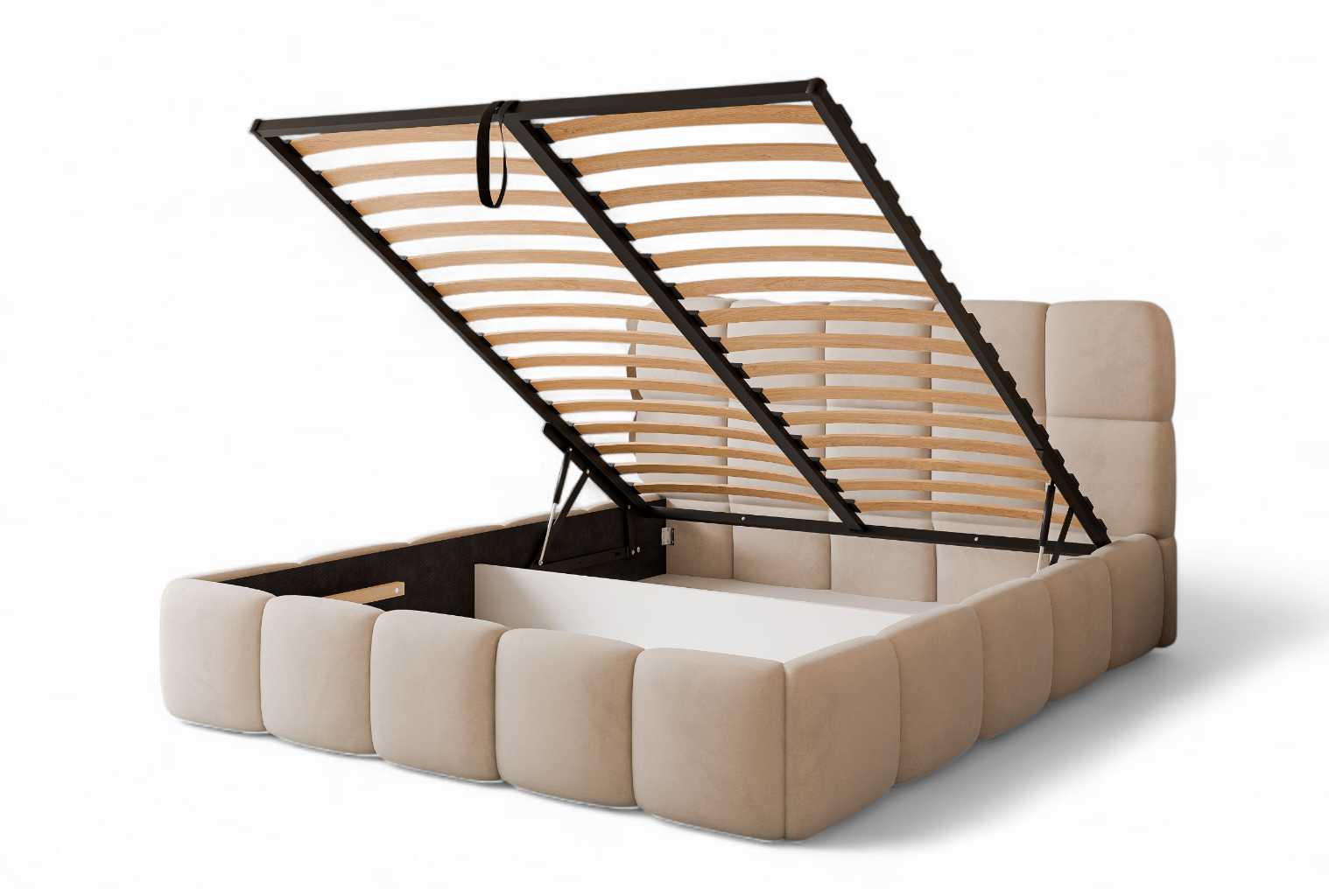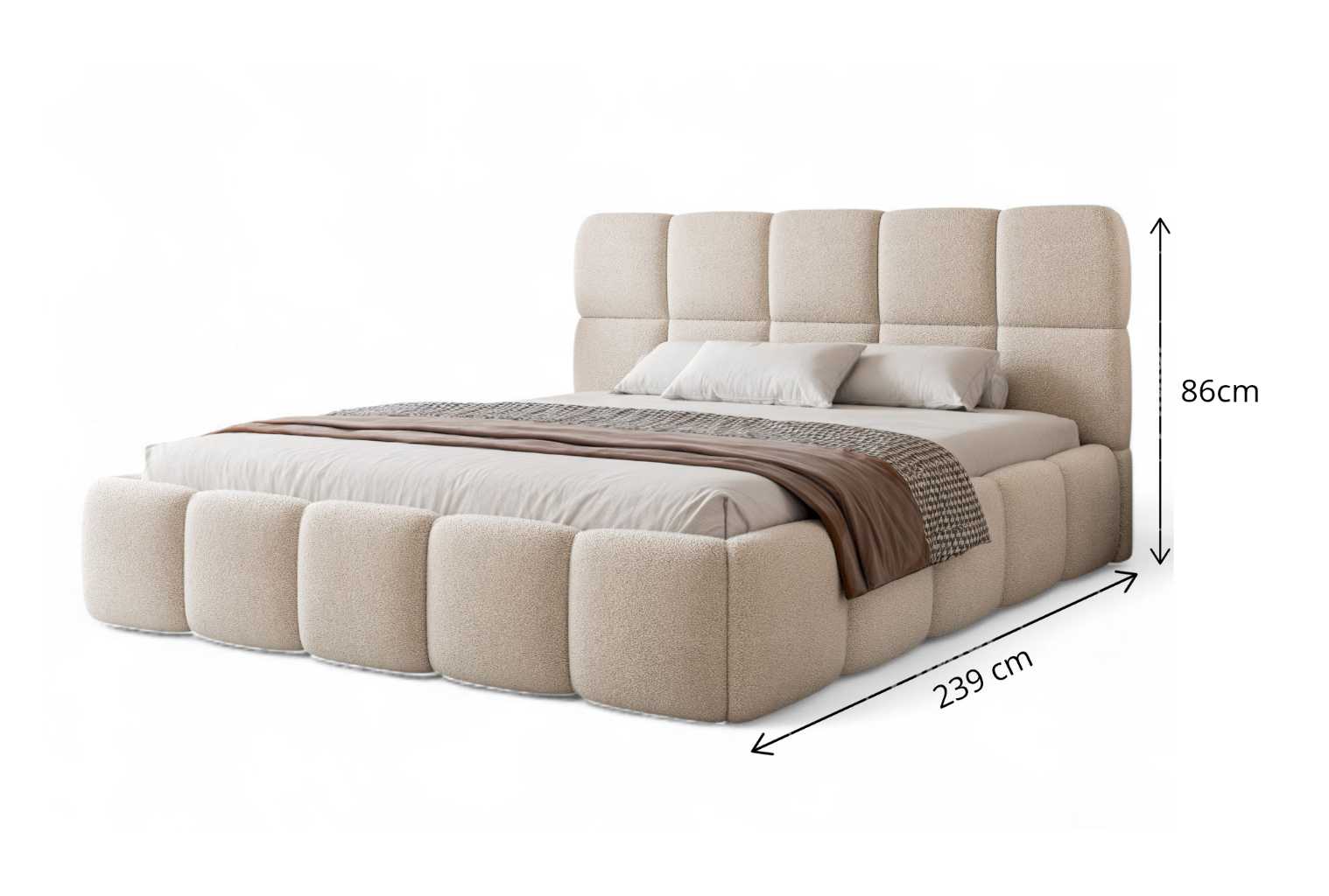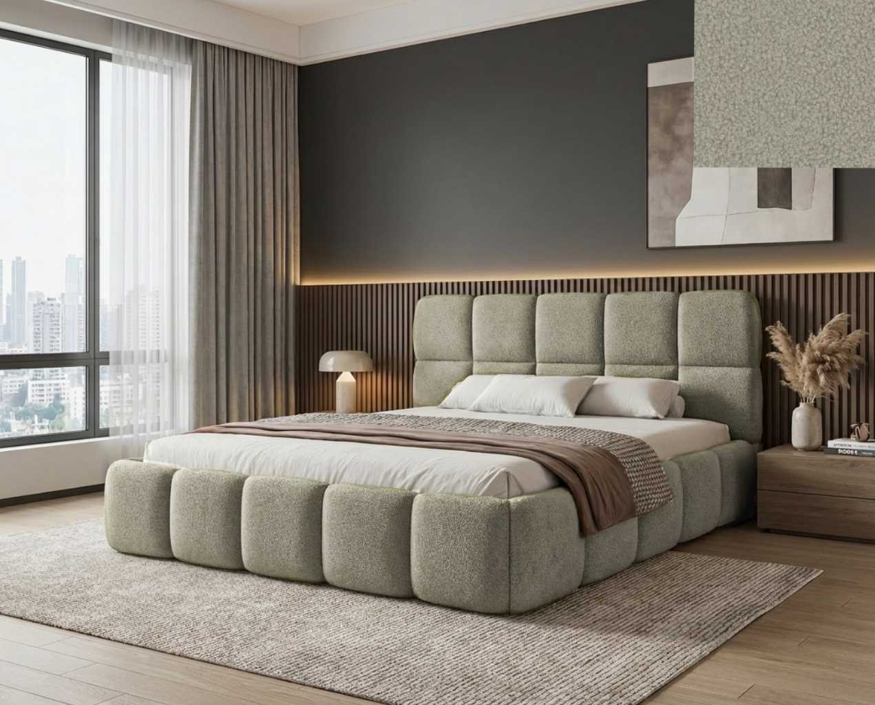 Pontinia ist ein charmantes Polsterbett, das praktisches und einzigartiges Design verbindet. Sein niedriges, elegantes Kopfteil aus 3 cm dickem Weichschaumstoff besticht durch seine Form, die an eine zarte Wolke erinnert – es verleiht dem Raum Leichtigkeit und Gemütlichkeit.