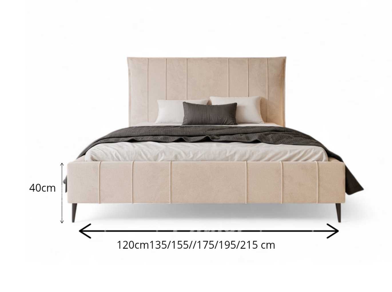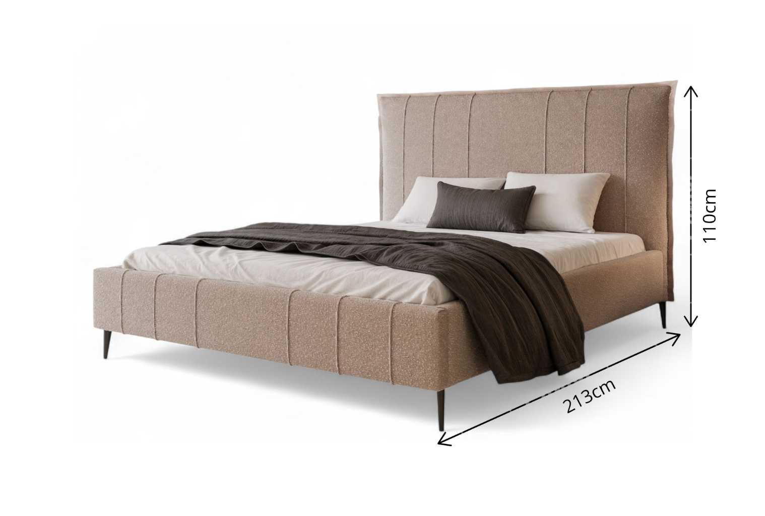 Das Herzstück des Bettes ist das hohe, weiche Kopfteil in Form eines Kissens, das in zwei Größen erhältlich ist – es sorgt nicht nur für Komfort, sondern auch für einen eleganten dekorativen Akzent.
