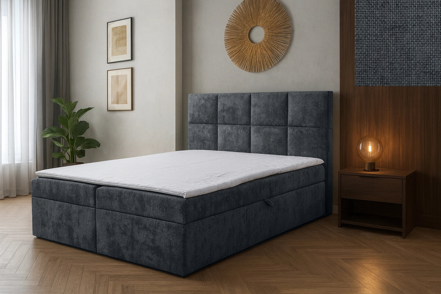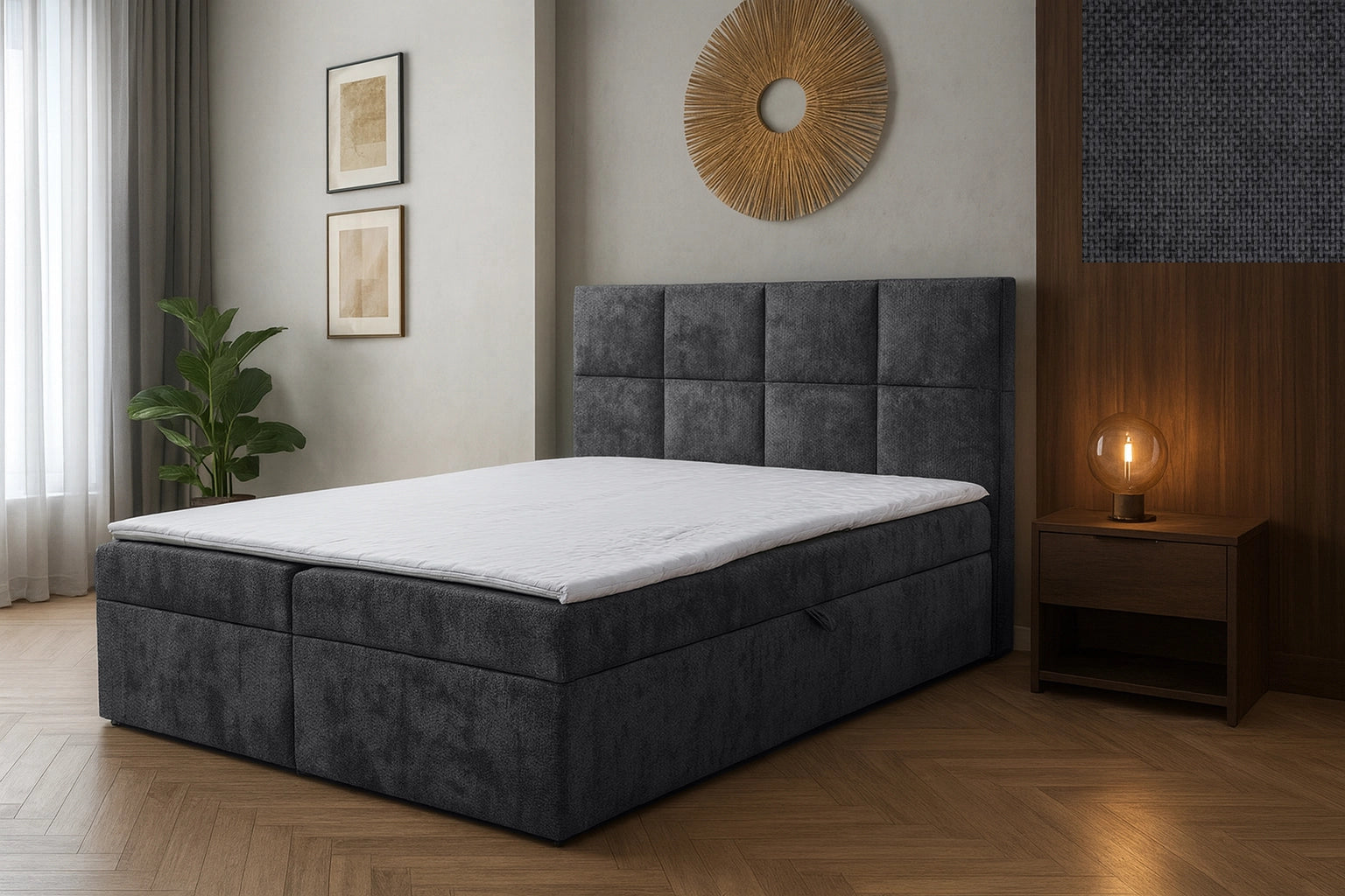 Tivoli ist die ideale Wahl für Liebhaber des Minimalismus. Sein modernes Loft-Design passt perfekt zu verschiedenen Einrichtungsstilen, von industriell bis skandinavisch, und verleiht jedem Schlafzimmer eine subtile Eleganz. Dank seiner geraden Linien und seiner zurückhaltenden Form passt das Bett Tivoli in jeden Raum und bietet gleichzeitig Funktionalität und Komfort.